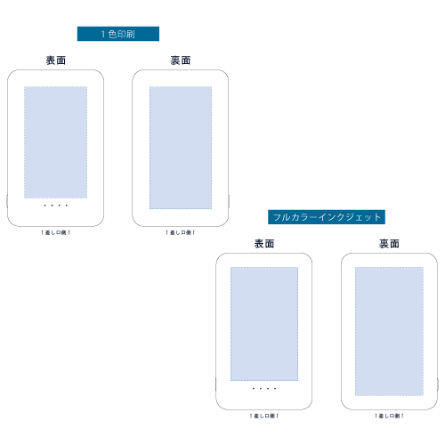 | 1色印刷範囲 | 表/W43×H77mm、裏/W43×H85mm |