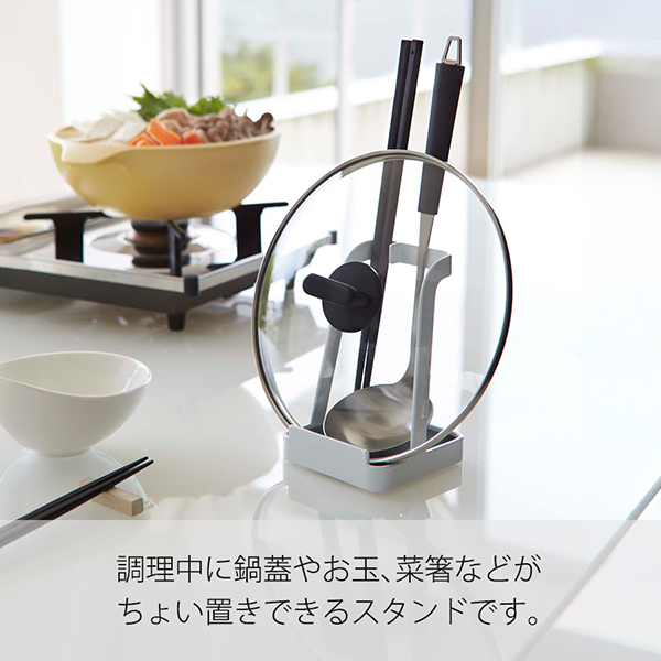 調理中、置き場所に困りがちなキッチンツールに!お玉や菜箸、鍋ふたなどの「ちょい置き」に便利なスタンドです。