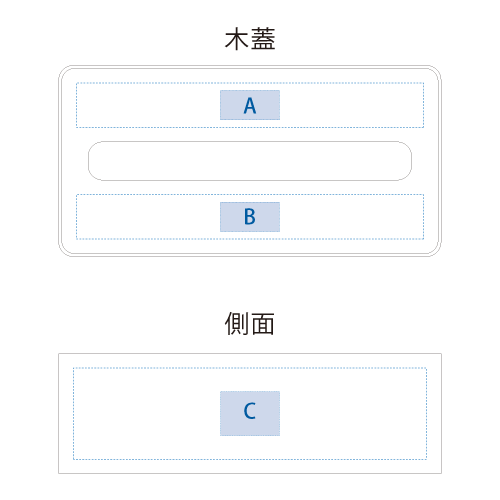 | 素押し・箔押し印刷範囲 | A・B/W40×H20mm、C/W40×H30mm(レーザー) |