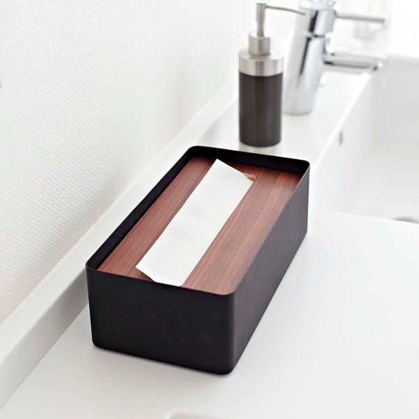 木の質感がシックなティッシュケースです。