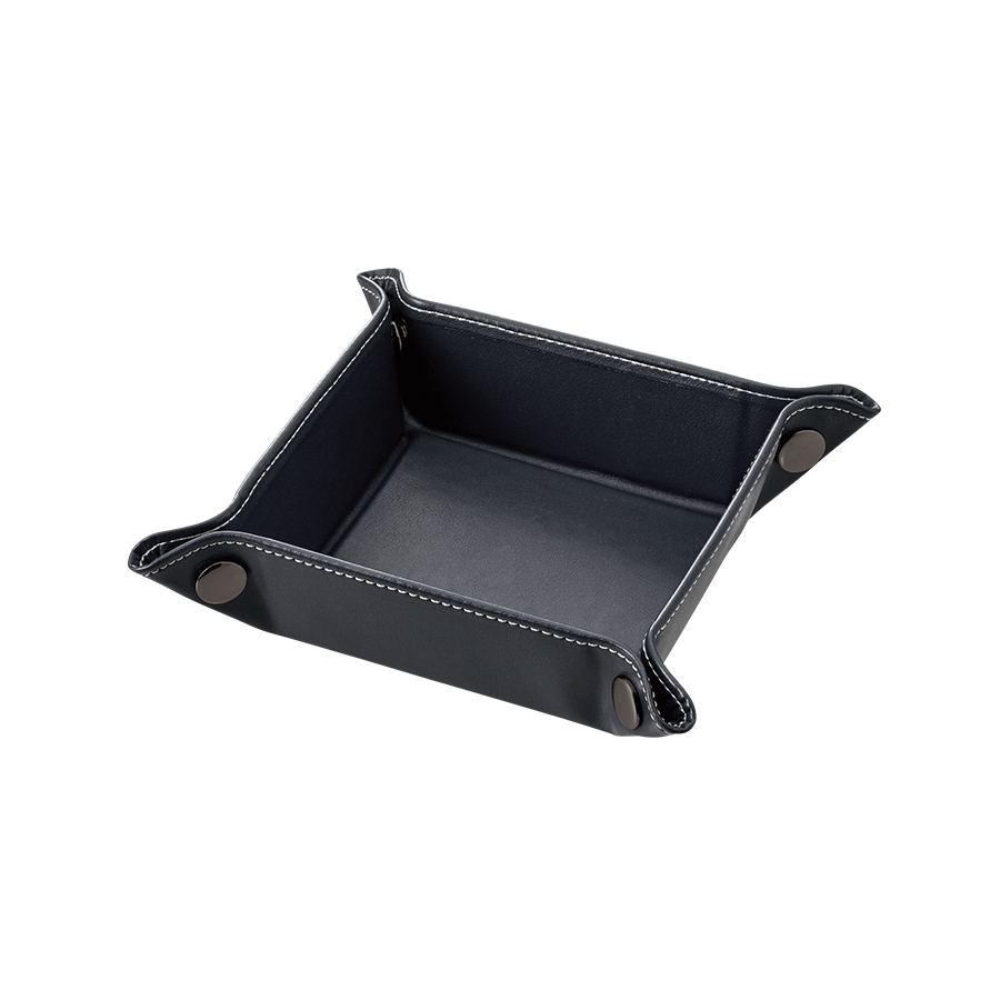 ちょっとした小物置きにぴったりなPUレザーを使用したトレイです。