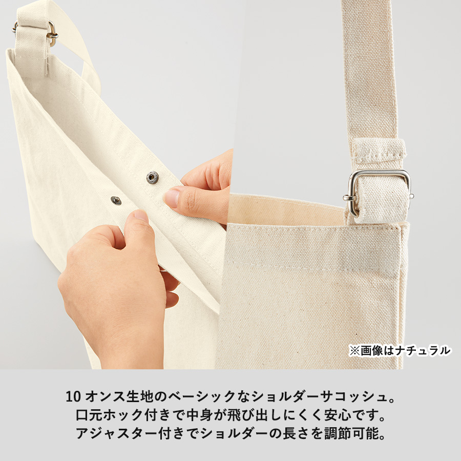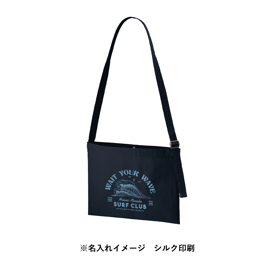 10オンスの生地を使用したサコッシュです。口元にはホックがついており、アジャスターが付いているので長さの調節も可能です。流行のショルダーを短くして持ち歩くスタイルも可能なサコッシュは人気のナチュラル、ミッドナイトブルー、ナイトブラックの3色をご用意しており、加工も単色からフルカラーまで対応しております。クイズラリーやスポーツイベントの参加記念品、オリジナルグッズとしての販売など、幅広くご提案頂けます。